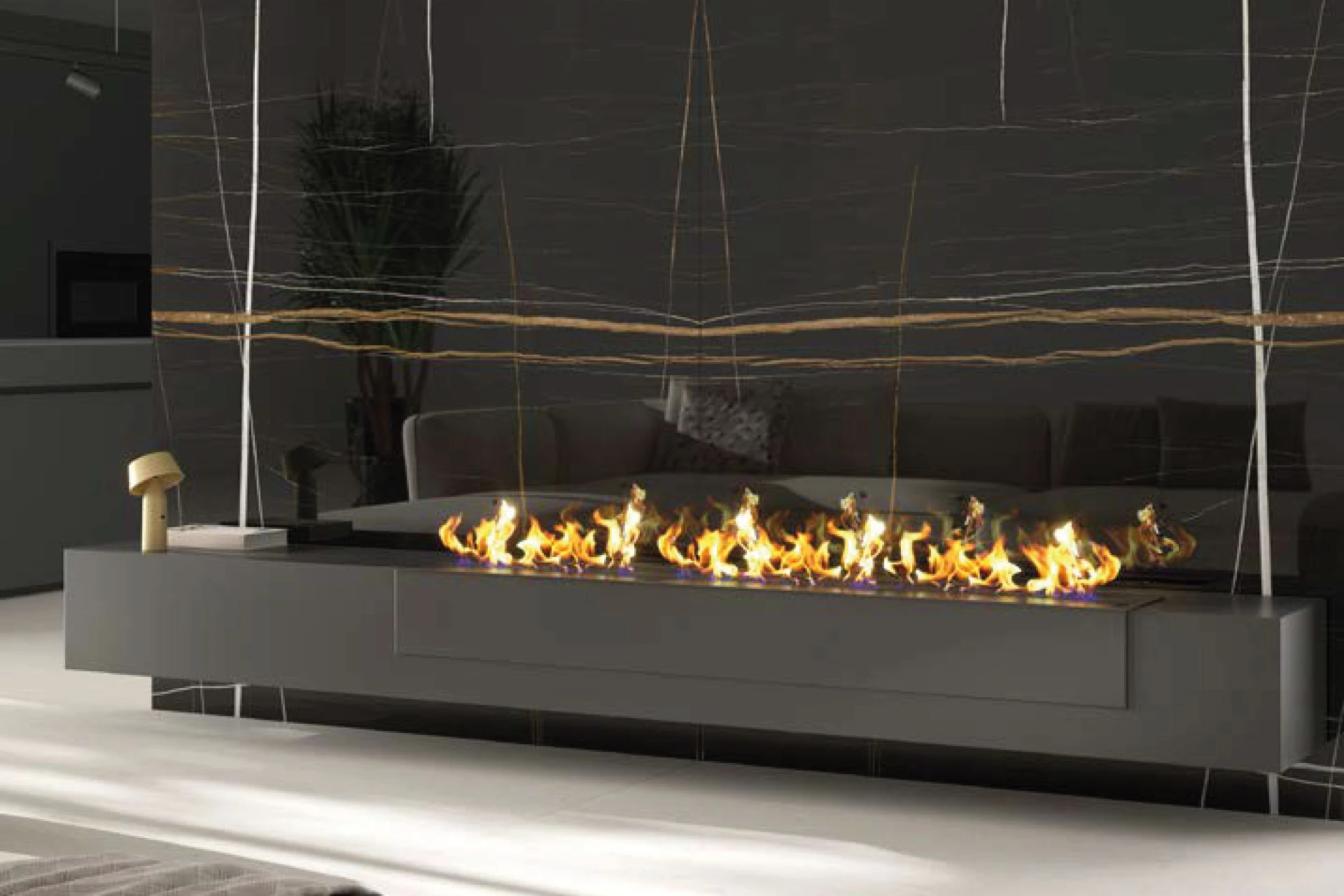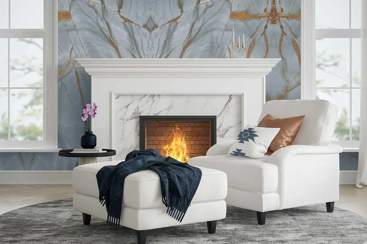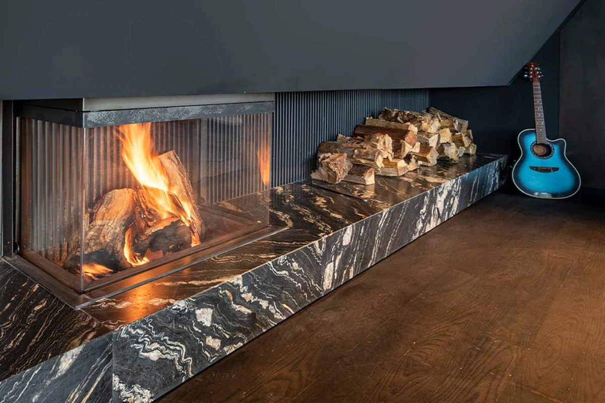 Una xemeneia de marbre o granit és el punt focal que defineix un espai.